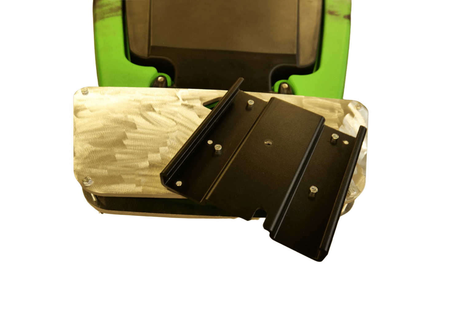 Support robuste composé d’une platine en aluminium usiné et d’un support noir fixé par visserie inox.